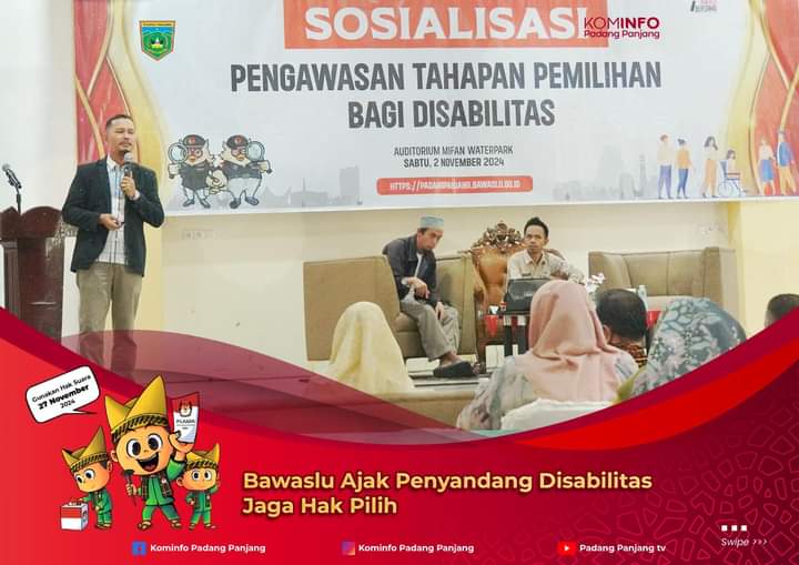 Sumbarheadline– Badan Pengawas Pemilu (Bawaslu) Kota Padang Panjang ajak penyandang Disabilitas untuk jaga hak pilihnya, saat mengikuti pilkada 27 November mendatang.