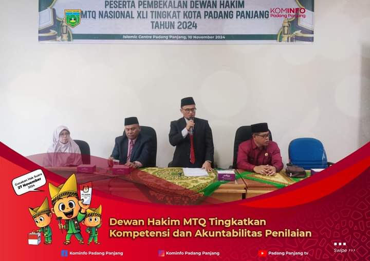 Sumbarheadline– Guna meningkatkan kompetensi dan akuntabilitas dewan hakim MTQ Nasional XLI-2024 Tingkat Kota Padang Panjang, Pemerintah Kota melalui Bagian Kesejahteraan Rakyat (Kesra) Setdako bekerja sama dengan Lembaga Pengembangan Tilawatil Qur’an (LPTQ) adakan kegiatan pembekalan untuk para dewan hakim, di Ruang Sekretariat MUI, Islamic Centre, Ahad (10/11/2024).