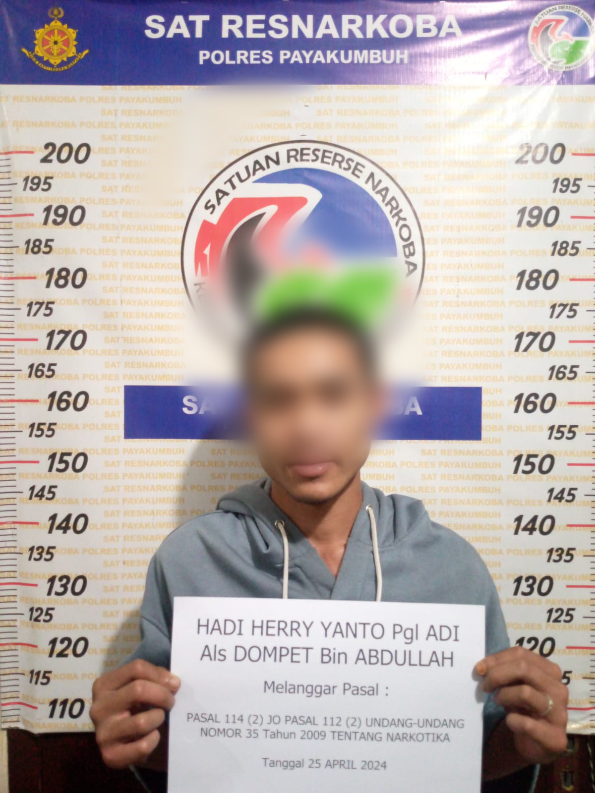 Menurut keterangan Kapolres Payakumbuh AKBP Wahyuni Sri Lestari melalui Kasatnarkoba Iptu Aiga, Jumat (26/4) siang, menjelaskan HHY alias Dompet ditangkap saat timnya berhasil mencegat dan menyergap terduga jaringan bisnis narkoba tersebut saat mengendarai sepeda motornya.