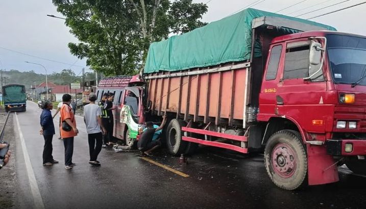 Di laporkan sebuah mikrobus merek Tampalo dengan no polisi BA 7021 KU, Jurusan Sungai Rumbai menabrak truk bak kayu yang sedang berhenti dari arah belakang.