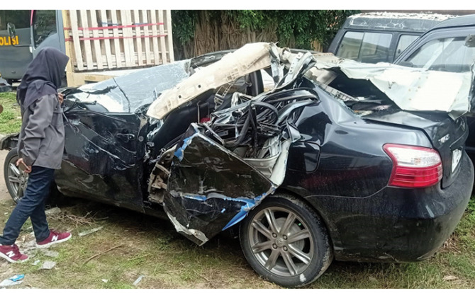 Mobil kemudian membentur bagian bak belakang kanan truk tronton yang dikemudikan Syafii, warga Kecamatan Kandangan, Kabupaten Temanggung.