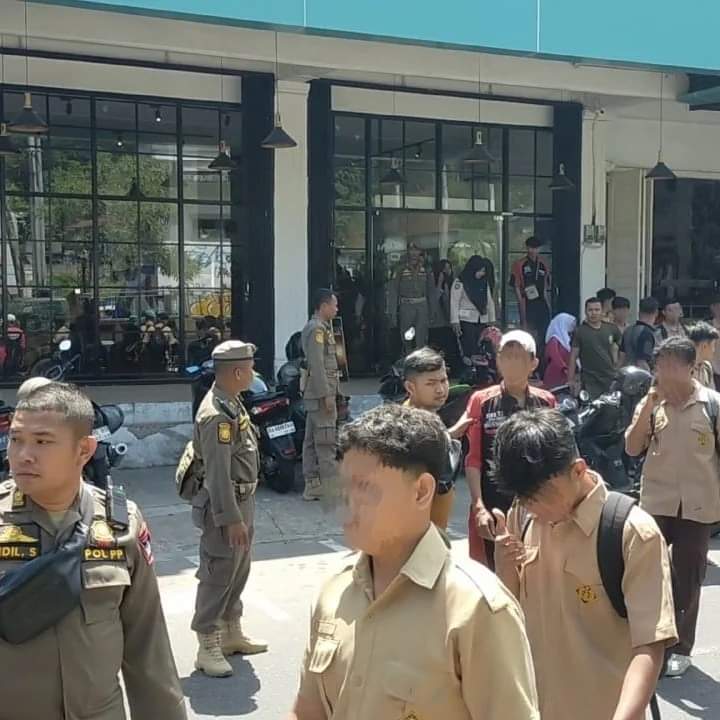 Sumbarheadline-Dapati laporan dari masyarakat, 37 orang pelajar lagi asik nongkrong duduk di kafe saat jam pelajaran, terpaksa diamankan satpol pp kota padang di kawasan Kecamatan padang Selatan, Kota Padang, Kamis (18/7/24).