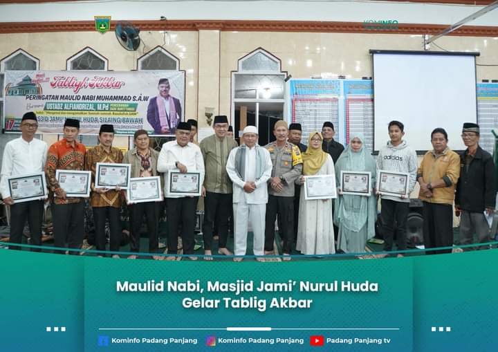 Sumbarheadline– Masjid Jami’ Nurul Huda, Kelurahan Silaing Bawah, Kecamatan Padang Panjang Barat (PPB) gelar Tablig Akbar memperingati Maulid Nabi Muhammad SAW, Selasa (17/9/2024) malam.