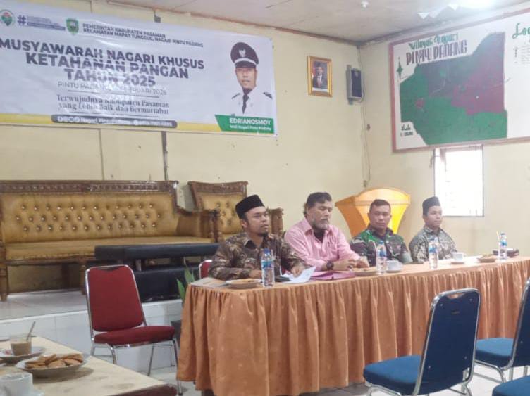 Sumbarheadline– Wali Nagari Pintu Padang Edrianosmoy melaksanakan gelar kegiatan awal tahun 2025 Musyawarah Nagari tentang Ketahanan Pangan dan Membahas program ketahanan pangan yg tertuang dalam Permendes Dan Kepmendes.