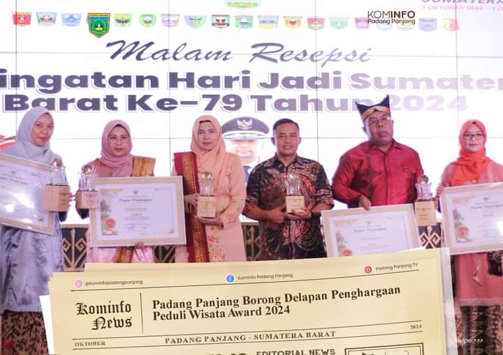 Sumbarheadline– Kota Padang Panjang boyong delapan penghargaan Peduli Wisata Award (PWA) Tahun 2024 pada Malam Resepsi Peringatan Hari Jadi ke-79 Provinsi Sumatera Barat di Auditorium Gubernuran, Selasa (1/10/2024).