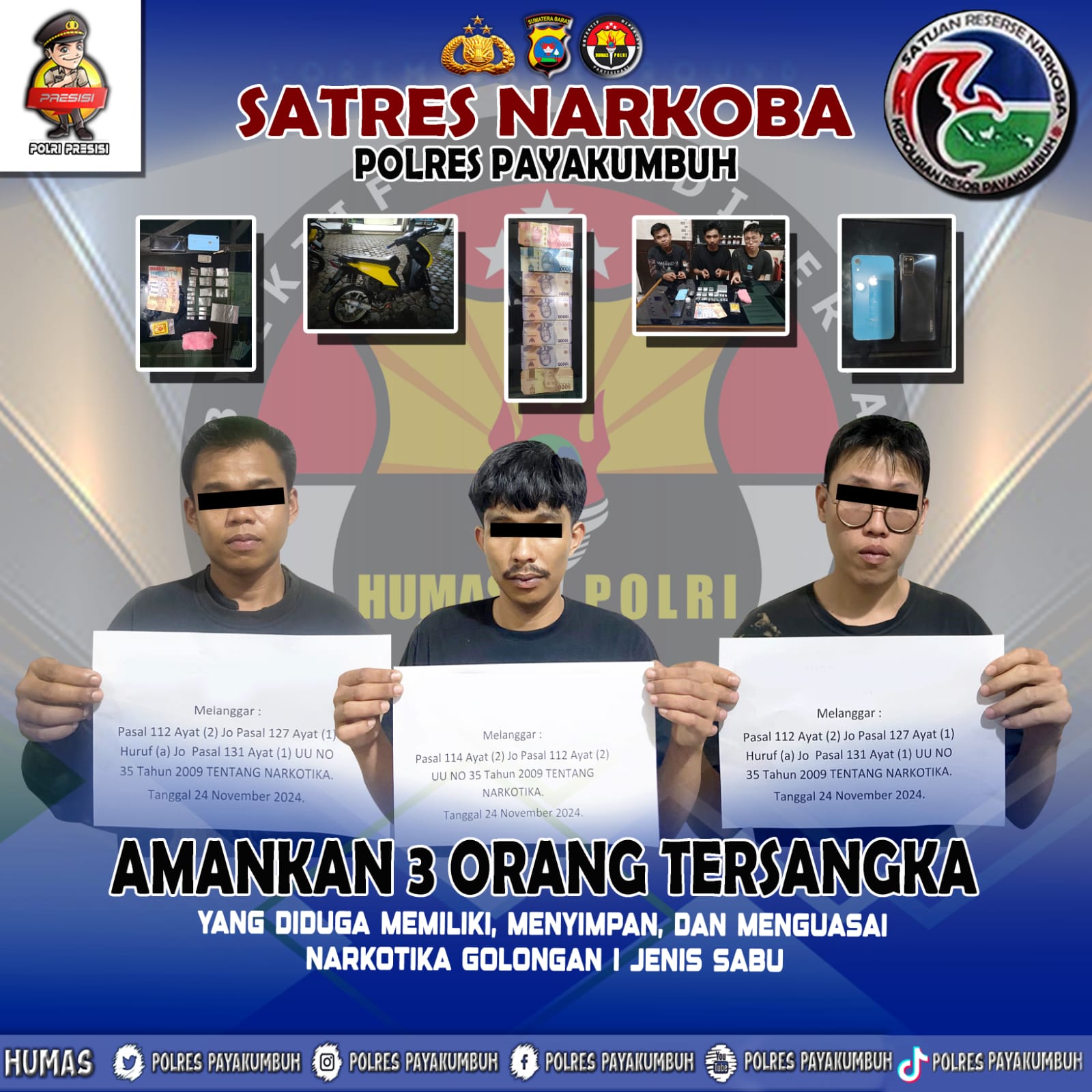 Sumbarheadline– Seorang pengedar dan dua orang temannya diringkus Satuan Reserse Narkoba (Satresnarkoba) Polres Payakumbuh, Minggu (24/11) malam.