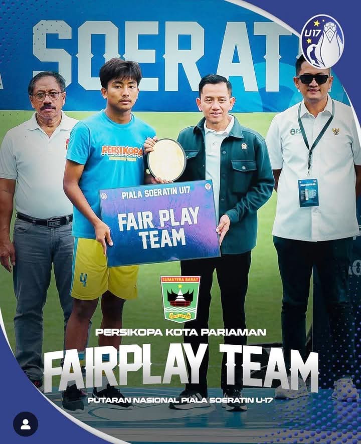 Sumbarheadline– Persatuan Sepakbola Kota Pariaman (Persikopa) Sabet Penghargaan sebagai Fair Play Team dan Top Scorer di Putaran Nasional Piala Soeratin U-17 yang diadakan di Solo dan Yogyakarta, 6-20 Desember 2024.
