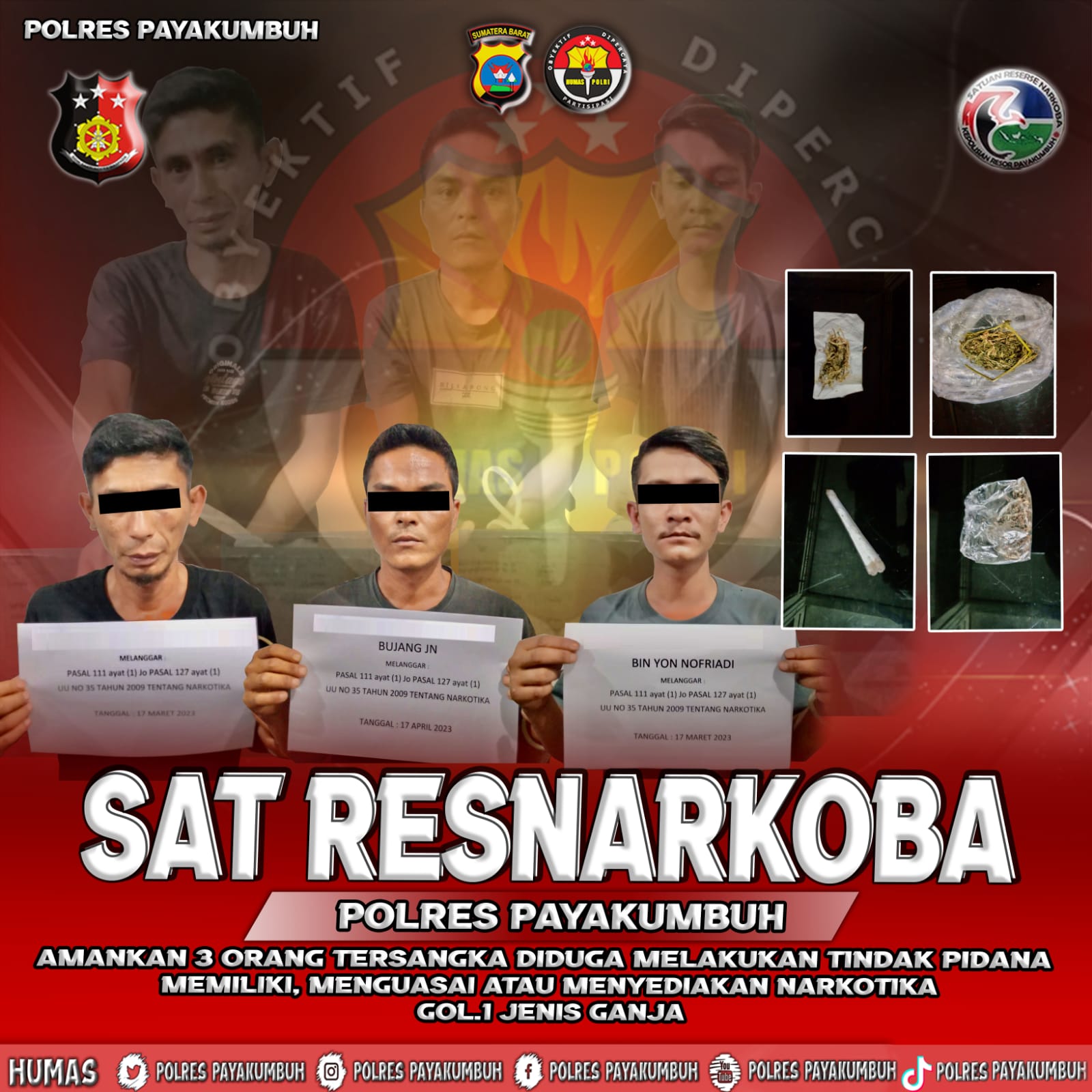Di lanjutkanya lagi penangkapan yang di lakukan merupakan laporan yang di berikan oleh masyarakat yang langsung di respon dengan cepat oleh Tim Buser Phantom Squad Sat Res Narkoba Polres Payakumbuh.
