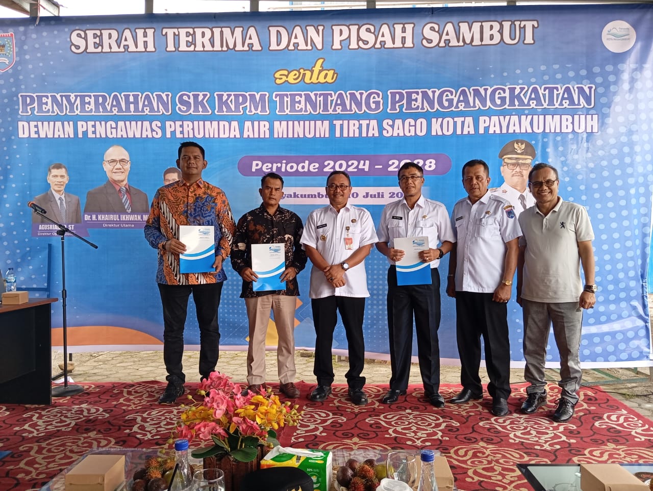 Acara penyerahan surat keputusan (SK) pengangkatan yang berlangsung di kawasan Labuah Basilang ini dihadiri oleh Direktur Utama Perumda Tirta Sago Khairul Ikhwan, Direktur Umum Medio Purnama, Direktur Operasional Agus Wiranto, Asisten II Elzadaswarman, serta para karyawan perusahaan tersebut.