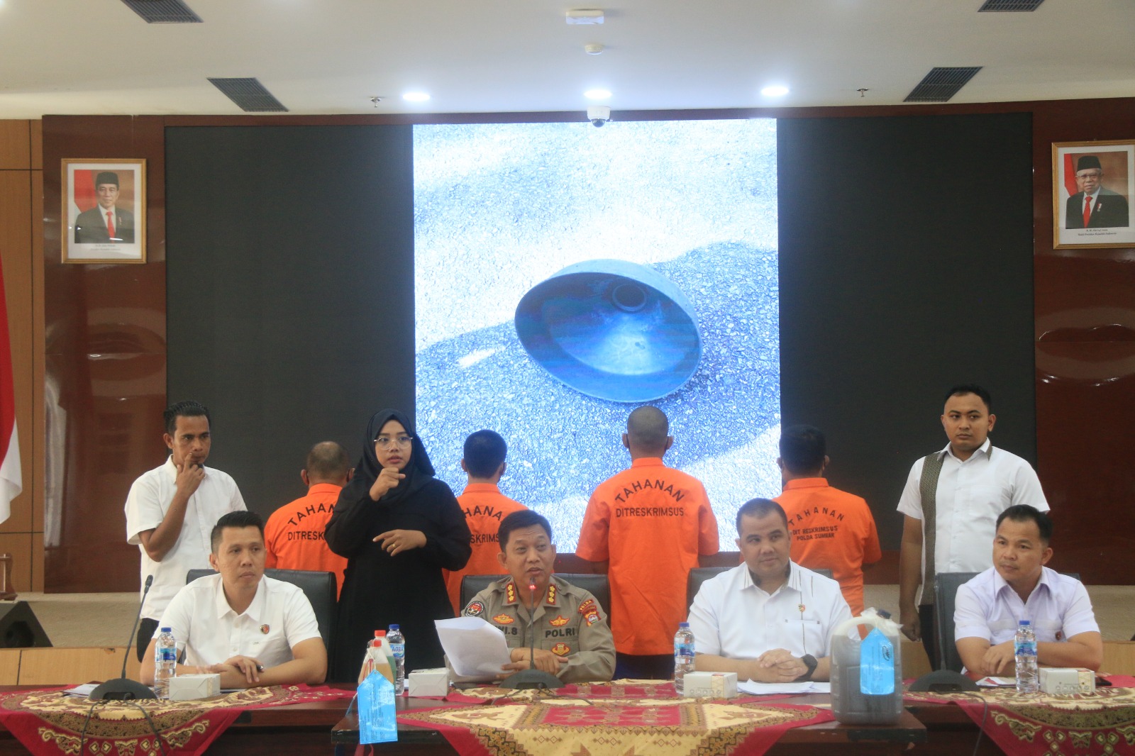 Hal ini disampaikan Kabid Humas Polda Sumbar Kombes Pol Dwi Sulistyawan, S.Ik didampingi Dirreskrimsus Polda Sumbar Kombes Pol Alfian Nurnas, S.Ik saat menggelar konferensi pers, Rabu (26/6) di Mapolda Sumbar.