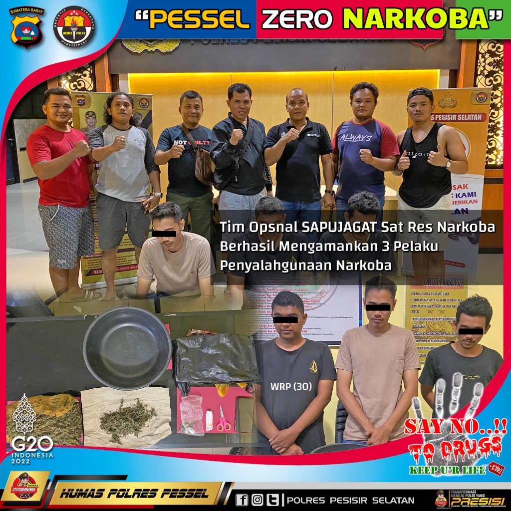Sumbarheadline-Polres Pessel melalui Satresnarkoba kembali membuktikan komitmennya untuk menjadikan wilayah kabupaten Pesisir selatan nol narkoba, hal ini dibuktikan dengan berhasilnya menangkap tiga orang sekaligus tersangka Narkotika jenis ganja kering pada Senin malam (24/10) di Kampung Luar Salido Kec.IV Jurai Kab. Pesisir Selatan.