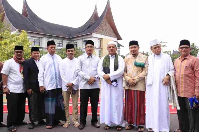 Sumbarhedaline-Ribuan jemaah padati halaman Kantor Balai Kota Payakumbuh ikuti salat Idul Adha 1444 Hijrah. Dan bertindak sebagai imam dan khatib Ustadz Yusron Lubis, Kamis (29/06/23).