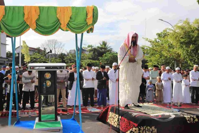 Sumbarheadline-Pelaksanaan Salat Idul Fitri 1444 Hijriah bersama Pemerintah Kota Payakumbuh digelar di halaman Balai Kota, Sabtu (22/04/23).