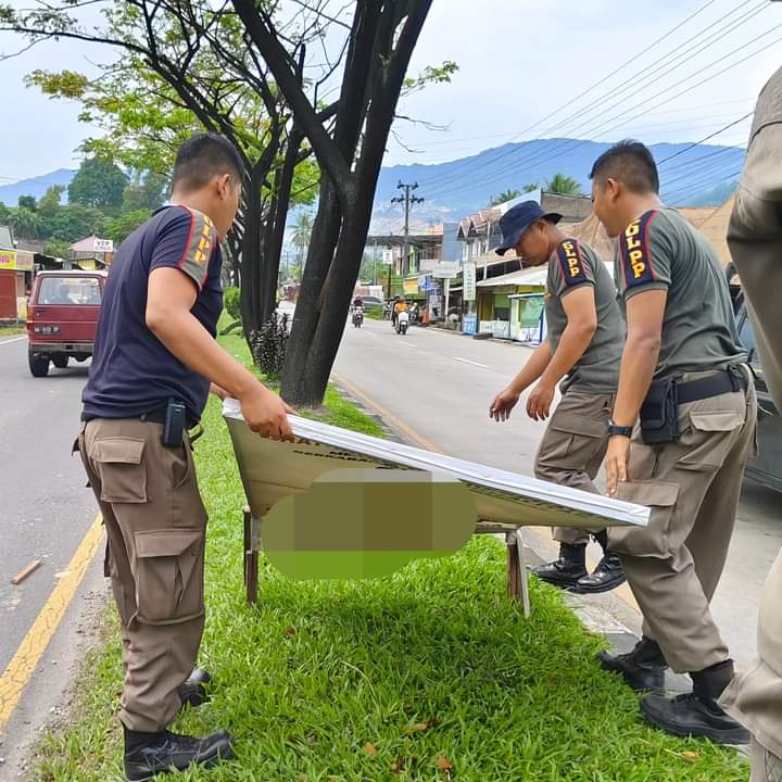 Sumbarheadline-Personil Satuan Polisi Pamong Praja (Satpol PP) Kota Padang kembali melakukan penertiban terhadap Baliho, iklan dan reklame yang terpasang di pohon-pohon maupun yang terpasang di taman Kota, Selasa, (9/7/2024).