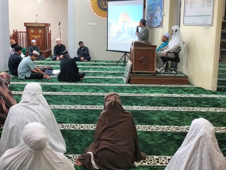 Di hadapan para jemaah masjid, Syeikh Addeen menyampaikan kabar duka dari Gaza, di mana setiap hari terjadi genosida oleh kaum zionis Israel.