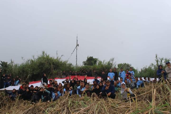 Sumbarheadline-Bendera Merah Putih raksasa kembali dikibarkan Siswa Pecinta Alam (Sispala) Boostra SMA N 2 di Puncak Bukit Tui Kota Padang Panjang, Sabtu (17/8/2024).
