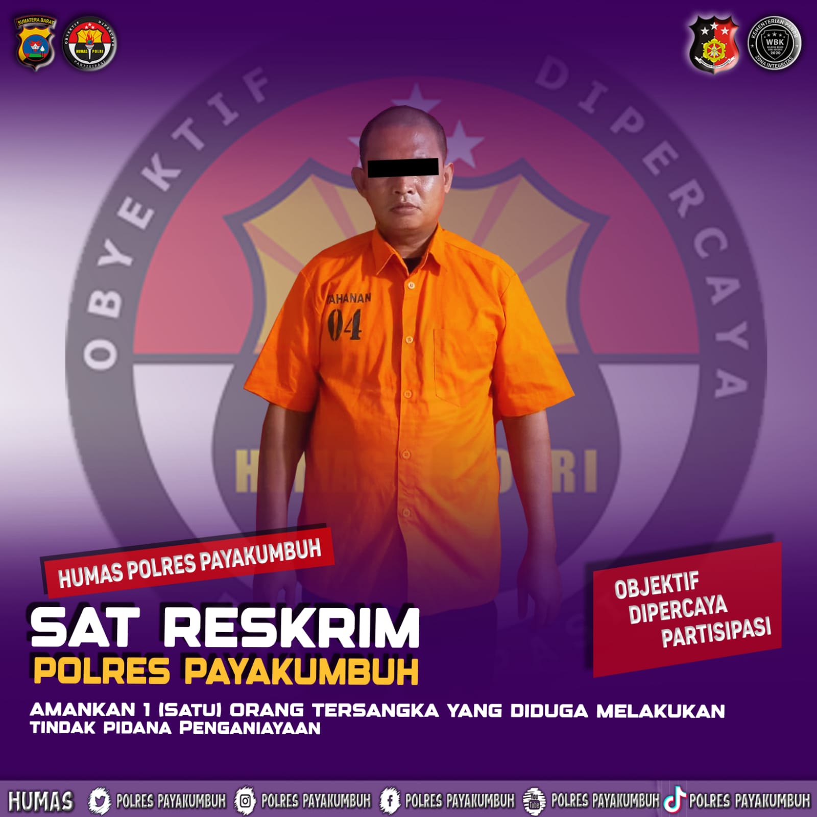” Iya, kita mengamankan seorang tersangka inisial AA (36th) karena diduga melakukan penganiayaan yang mengakibatkan korban patah pada bagian kaki, ” ungkap Kasat Reskrim Polres Payakumbuh Iptu Doni Pramadona saat di konfirmasi.