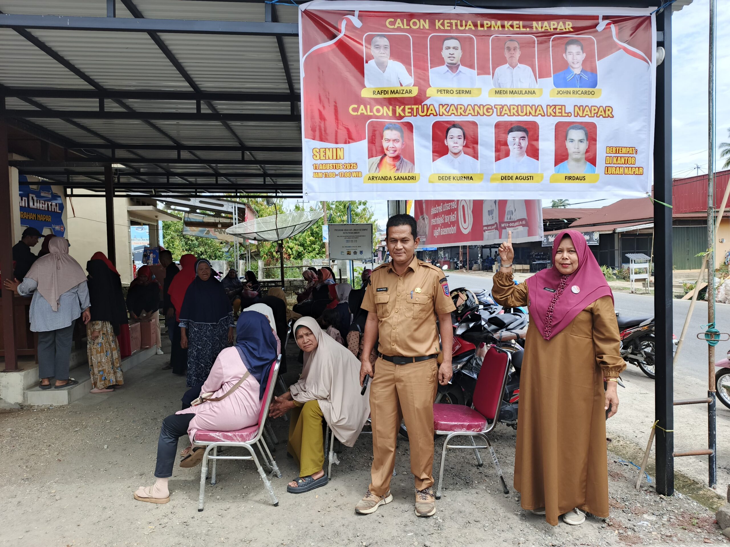 Sumbarheadline– Warga Kelurahan Napar, Kecamatan Payakumbuh Utara, antusias mengikuti pemilihan Ketua Lembaga Pemberdayaan Masyarakat (LPM) dan Ketua Karang Taruna, Senin (11/8/2025). Kegiatan yang digelar di halaman Kantor Lurah Napar ini berlangsung sejak pukul 11.00 hingga jam 17.00 Wib.
